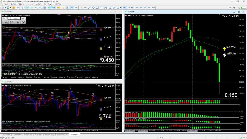 ドル円相場が1ドル=158円台まで上昇した場合、次に注目すべきは1ドル=158.20円付近での攻防です。この水準を完全に上回れば、1ドル=159円を目指してさらに上昇する可能性が高まります。また、1ドル=158円前後が下支えとなる場合は、1ドル=159円を目指す動きと見て良いでしょう。