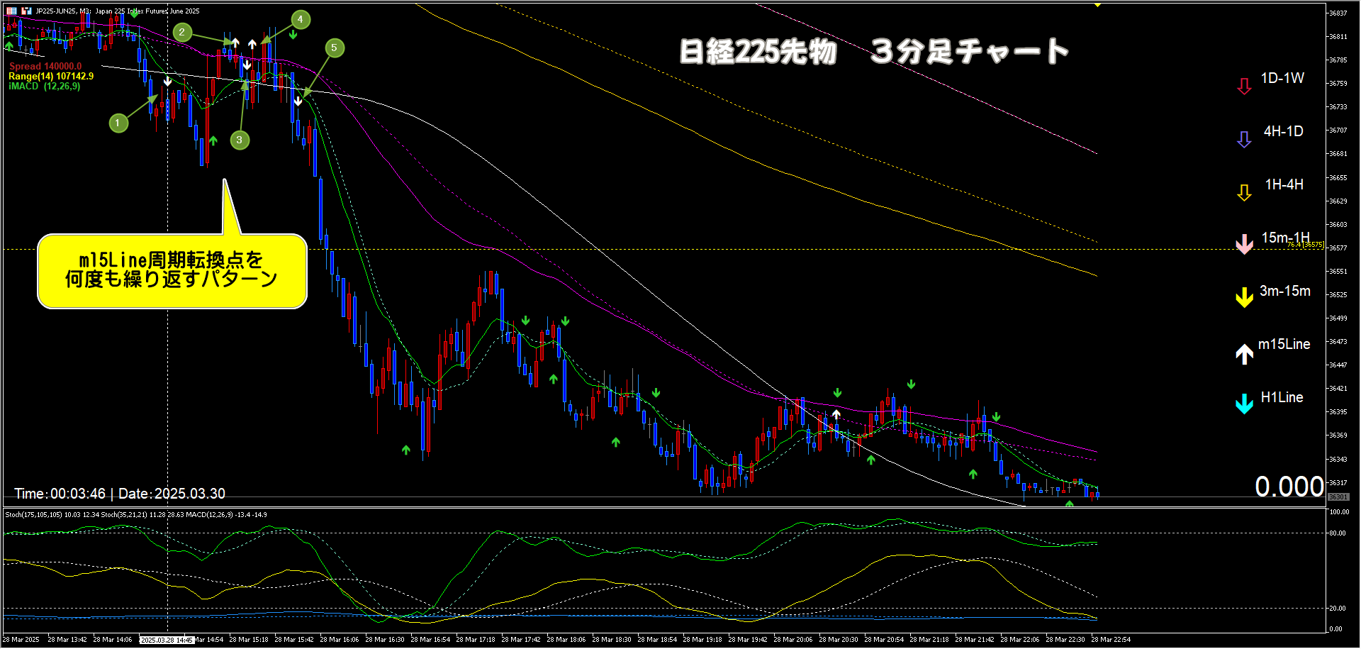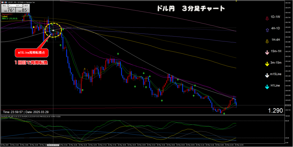 m15Line周期転換点を何度も表示するパターン。
