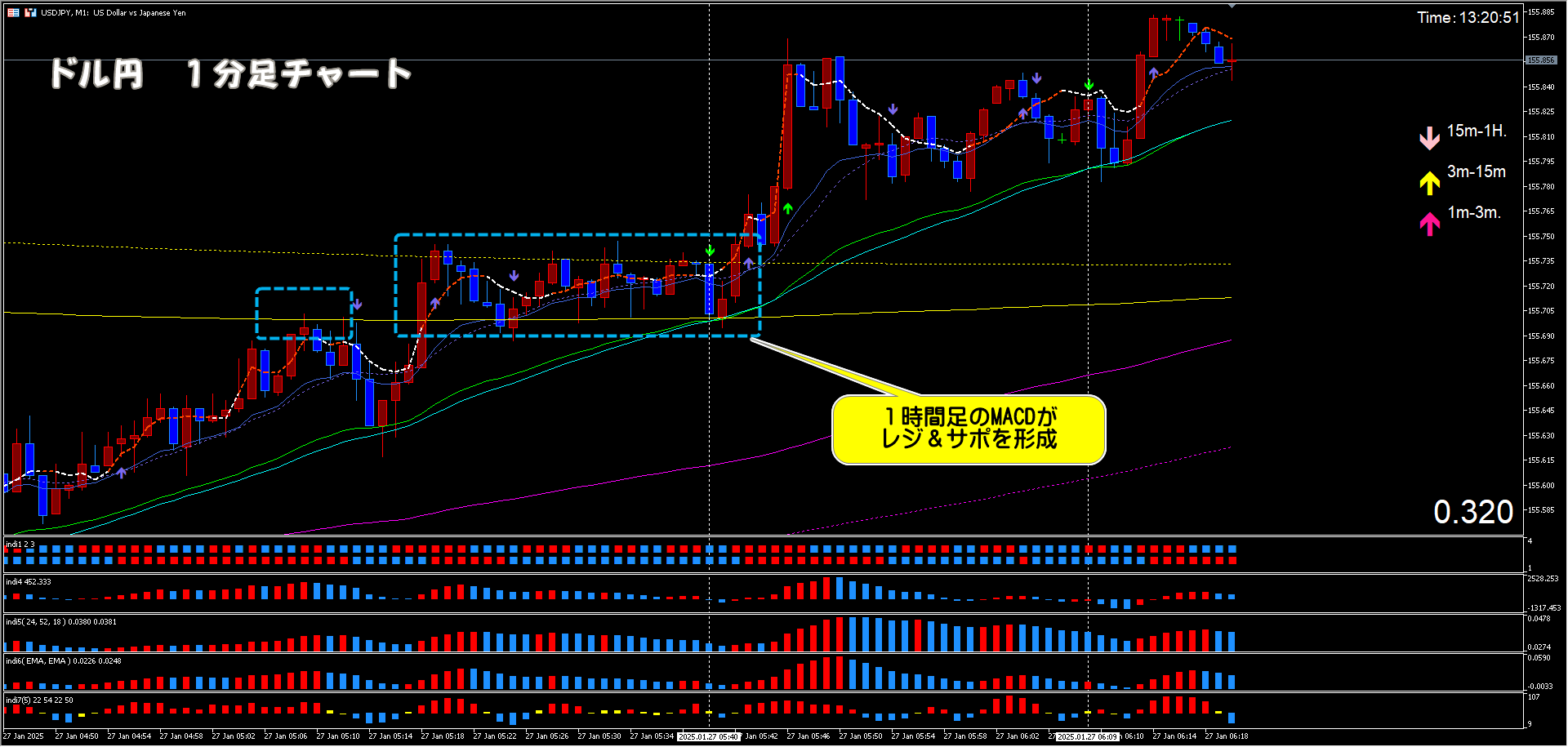 1時間足のMACDがレジ&サポを形成