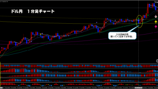 大きな下落の途中で、3分足MACDがゴールデンクロスをした場合。3分足MACDが、ゴールデンクロスをしてきていますが、現時点で、チャートバーの実体が3分足MACDの下に位置しているので、反転のサインとしては有効ではありません。チャートバーの...
