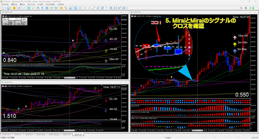 5.MiraiとMiraiのシグナルがクロスしたことを確認。